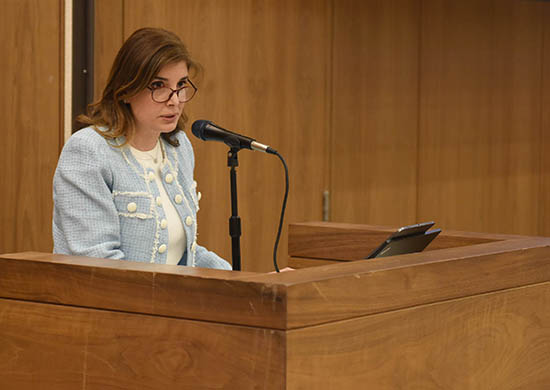 Trustee Randa El-Sayed Haffar (BA '90) spoke about the “incredible legacy" of the late Mamdouha El-Sayed Bobst “who never forgot her roots. She was a visionary, a woman of compassion, whose boundless generosity knew no bounds. Through her philanthropy, she touched the lives of countless individuals, students, and patients leaving an indelible mark on their hearts," she said.
